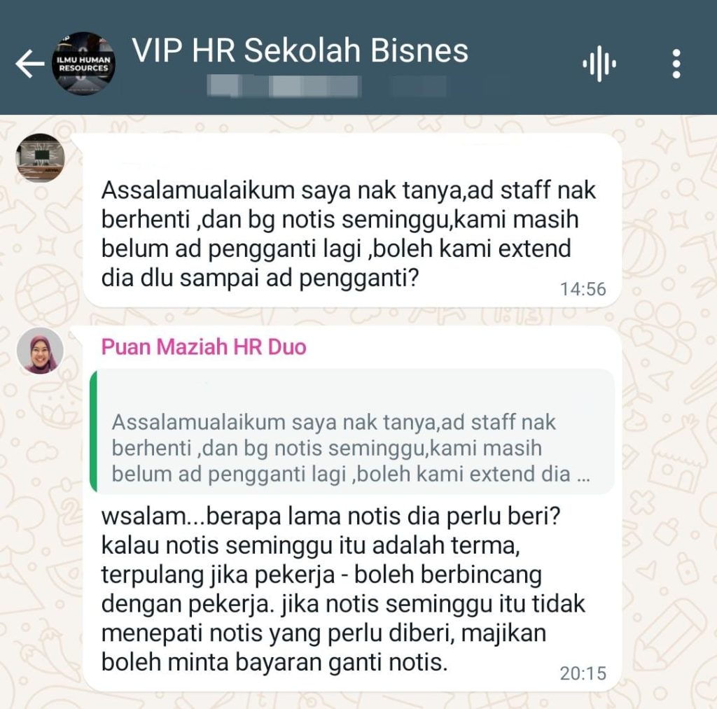Dalam group whatsapp ini, consultant kami akan aktif berkongsi mengenai ilmu HR yang efektif untuk organisasi anda.