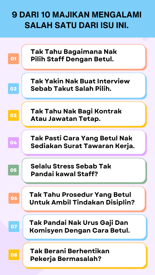 Antara sebab paling utama kenapa majikan tertekan adalah salah ambil pekerja dan tidak tahu cara memberhentikan pekerja.